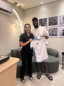 Mais do que iniciar um procedimento estético, a visita de Gerson à unidade de Belo Horizonte também foi marcada por um momento de carinho e reconhecimento. Durante o atendimento, o jogador demonstrou sua gratidão à Dra. Paulliny, profissional que está à frente da unidade.