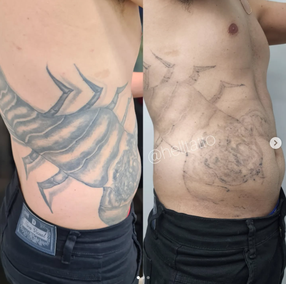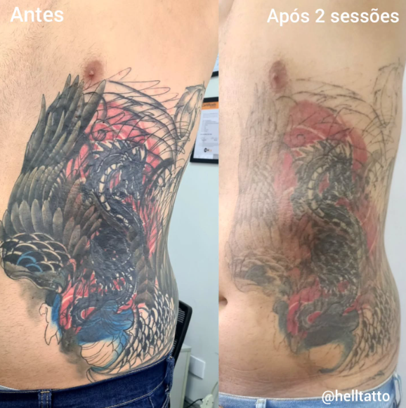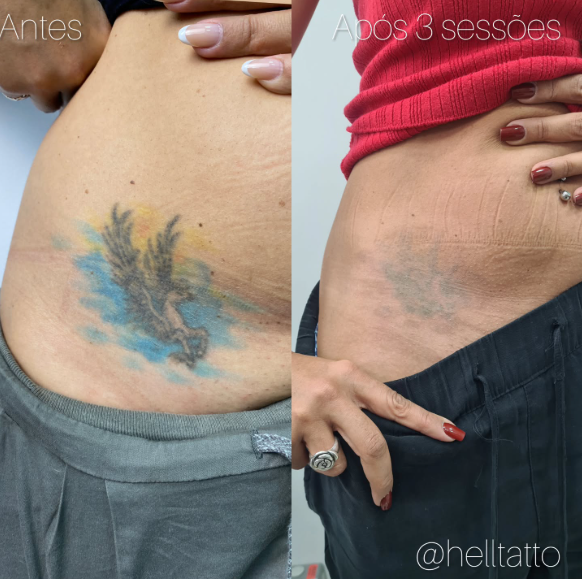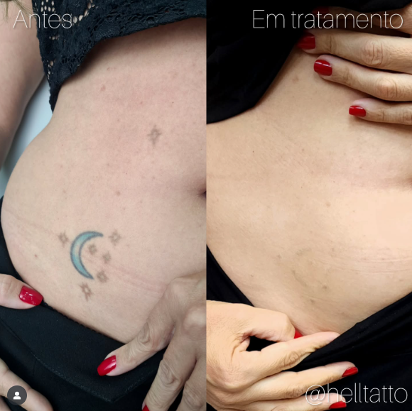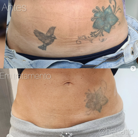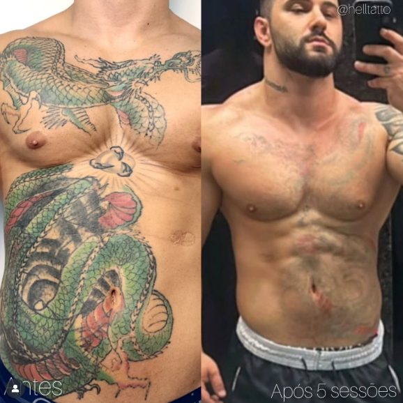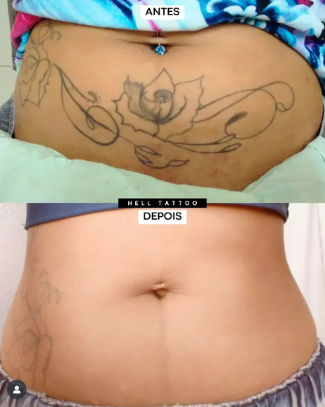 antes e depois de remoção de tatuagem no abdômen.
