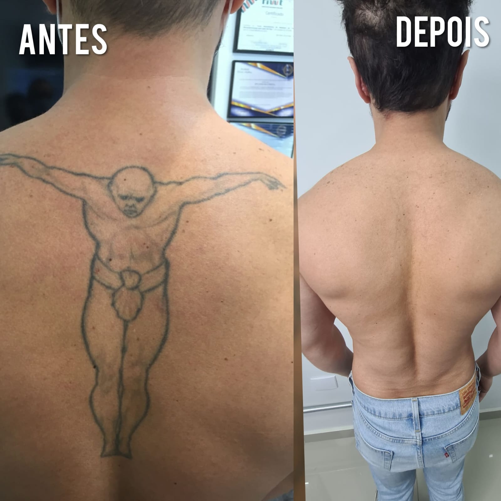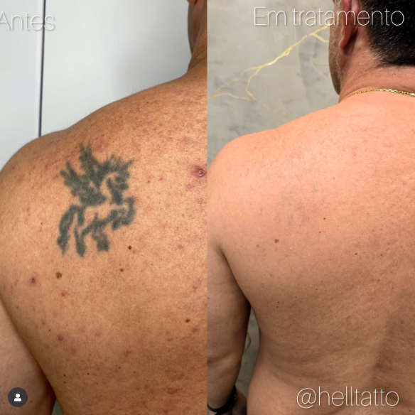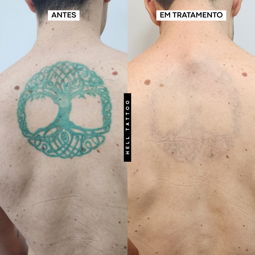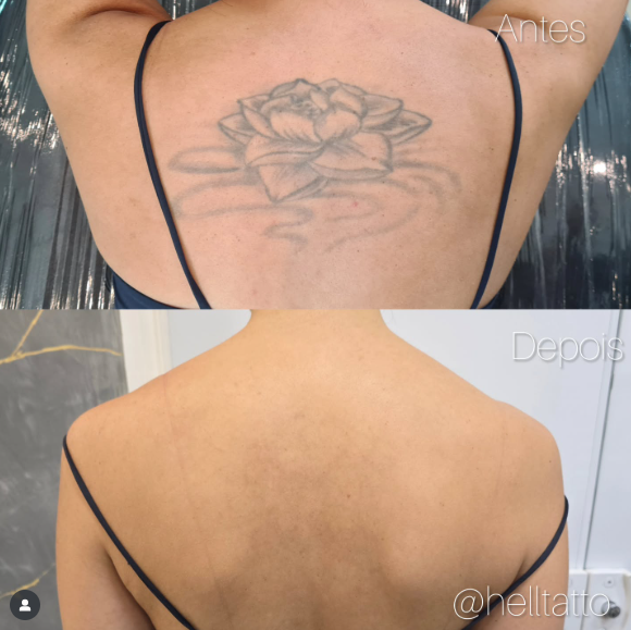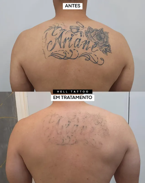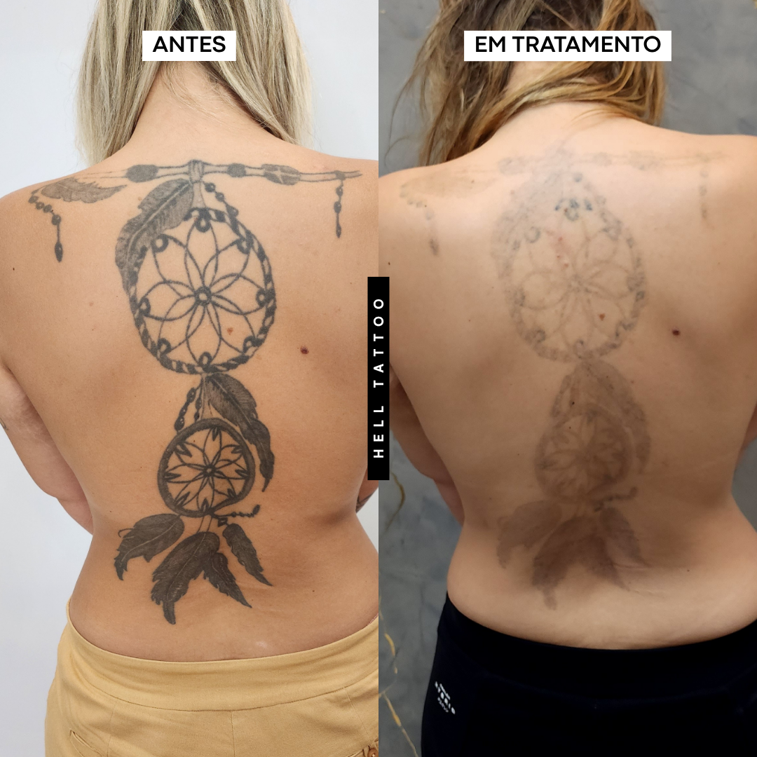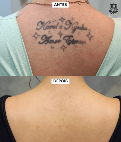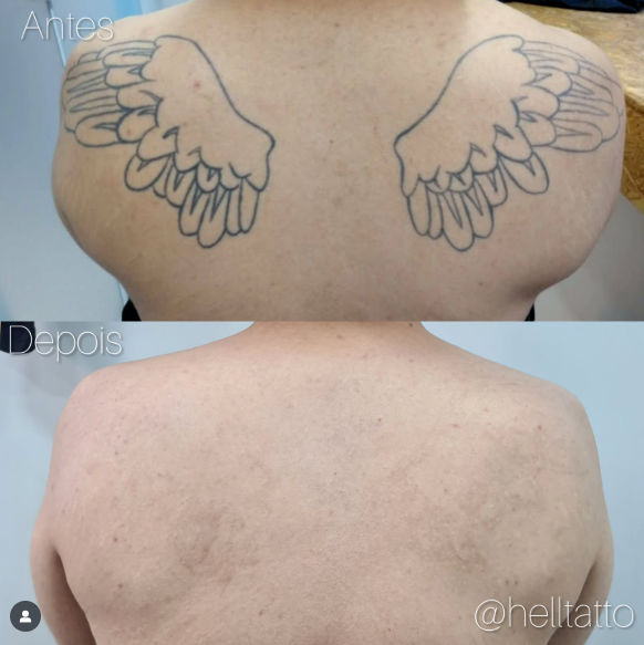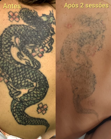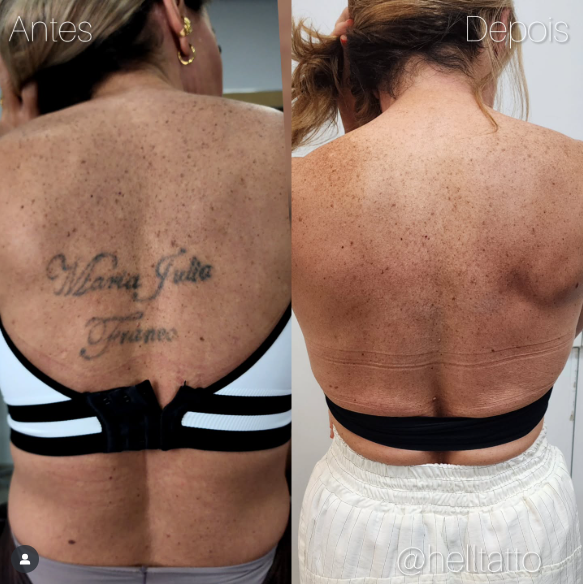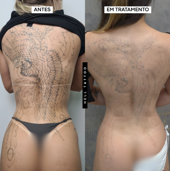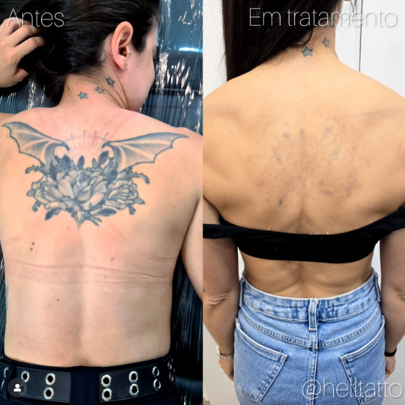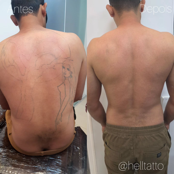 antes e depois de remoção de tatuagem nas costas.