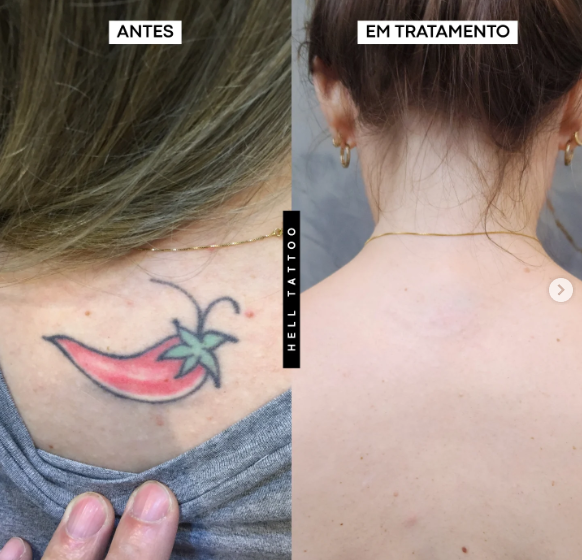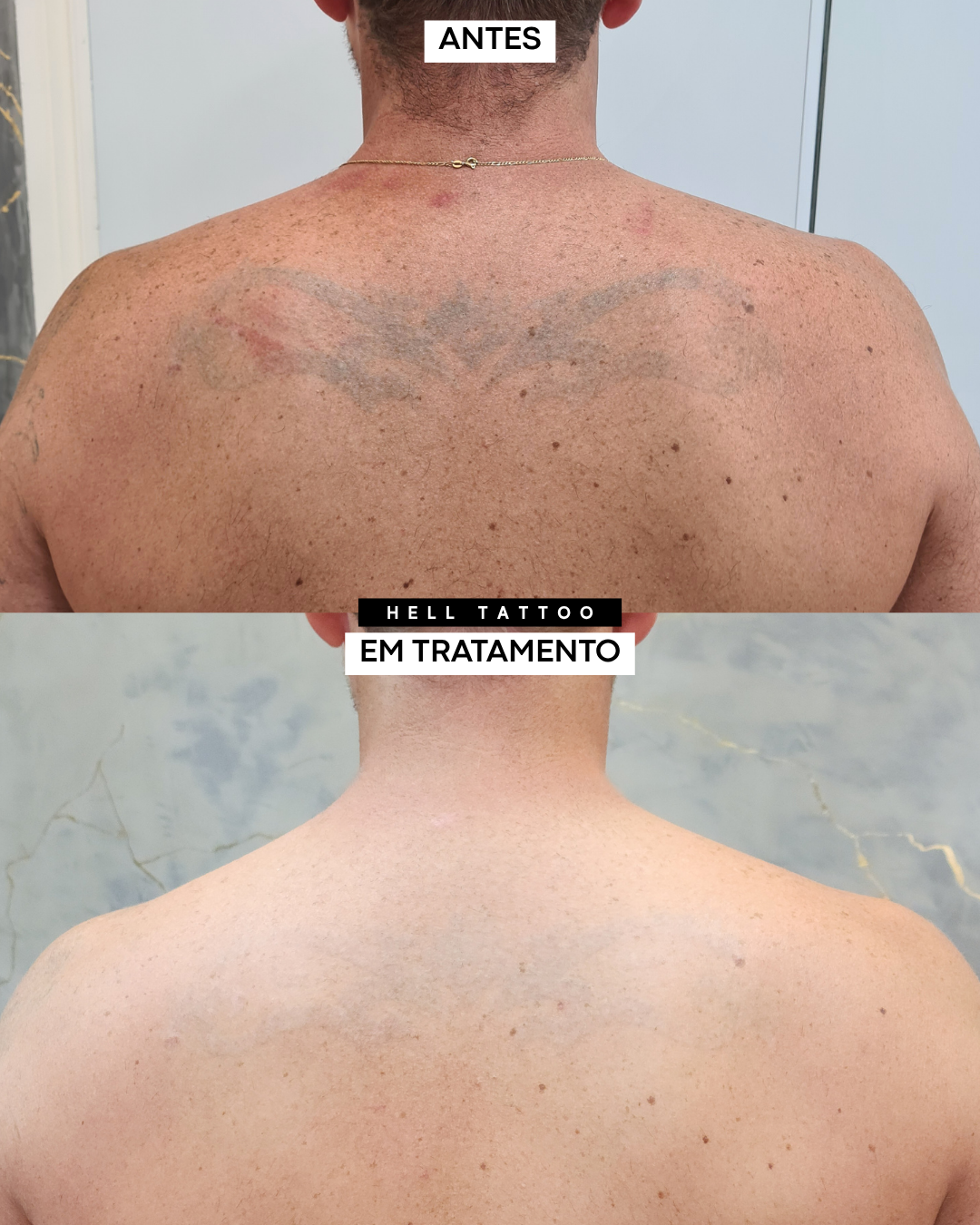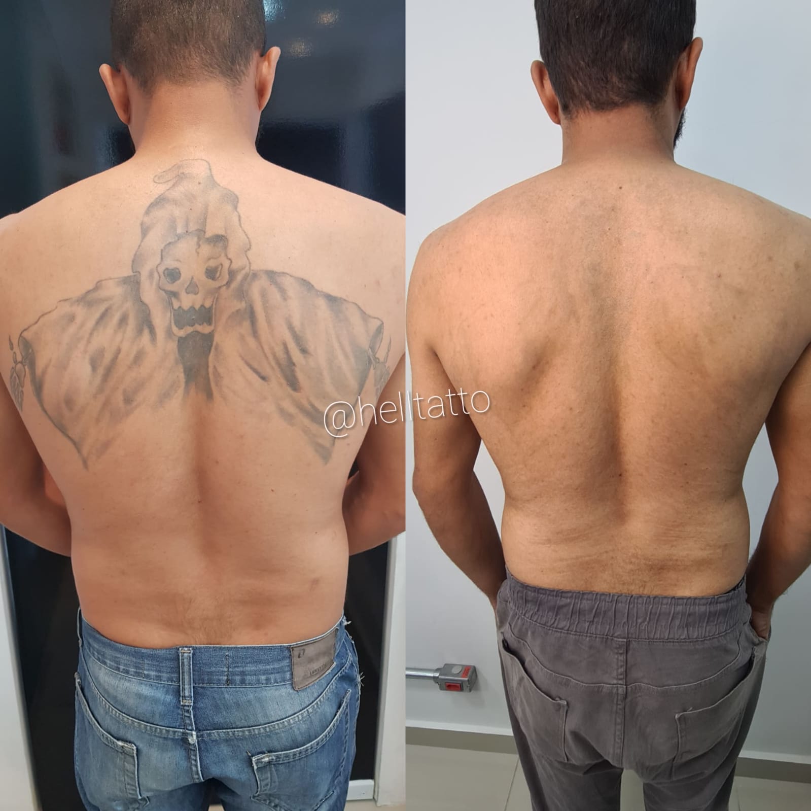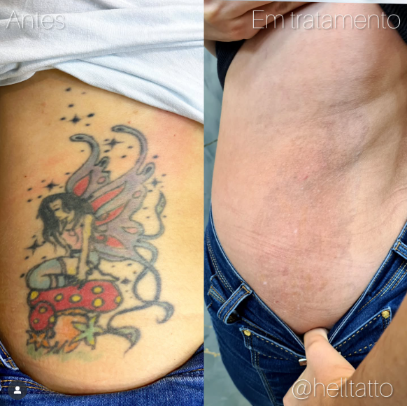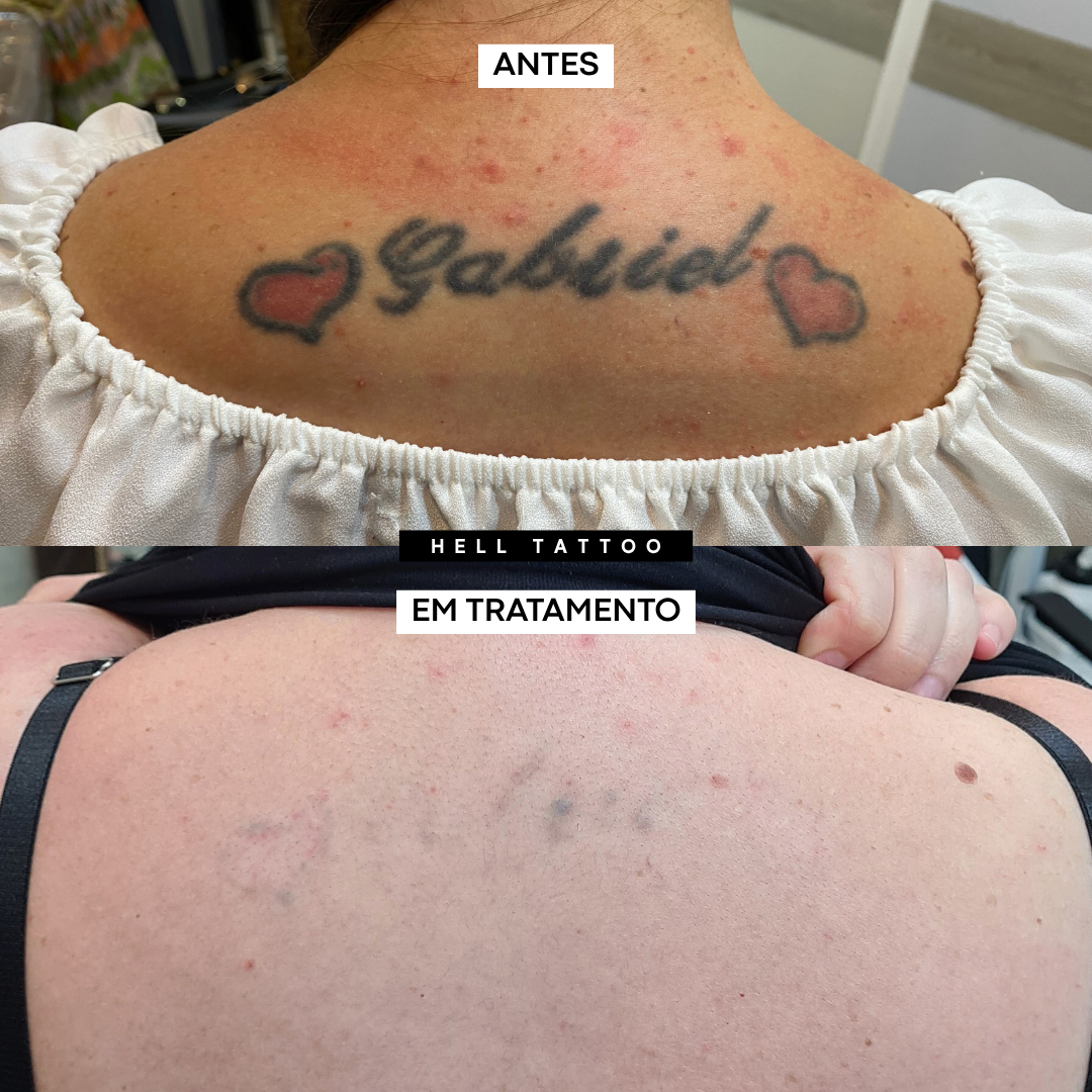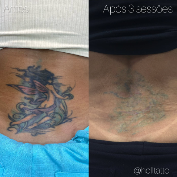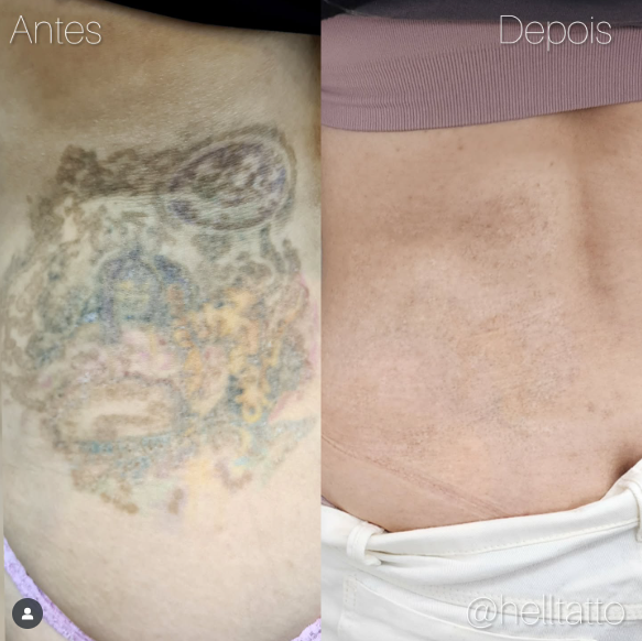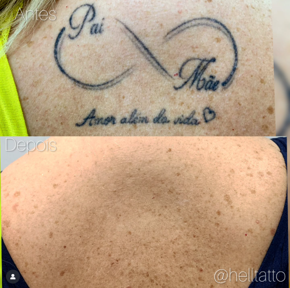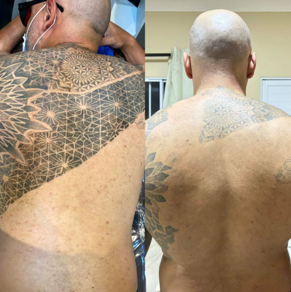 antes e depois de remoção de tatuagem nas costas.
